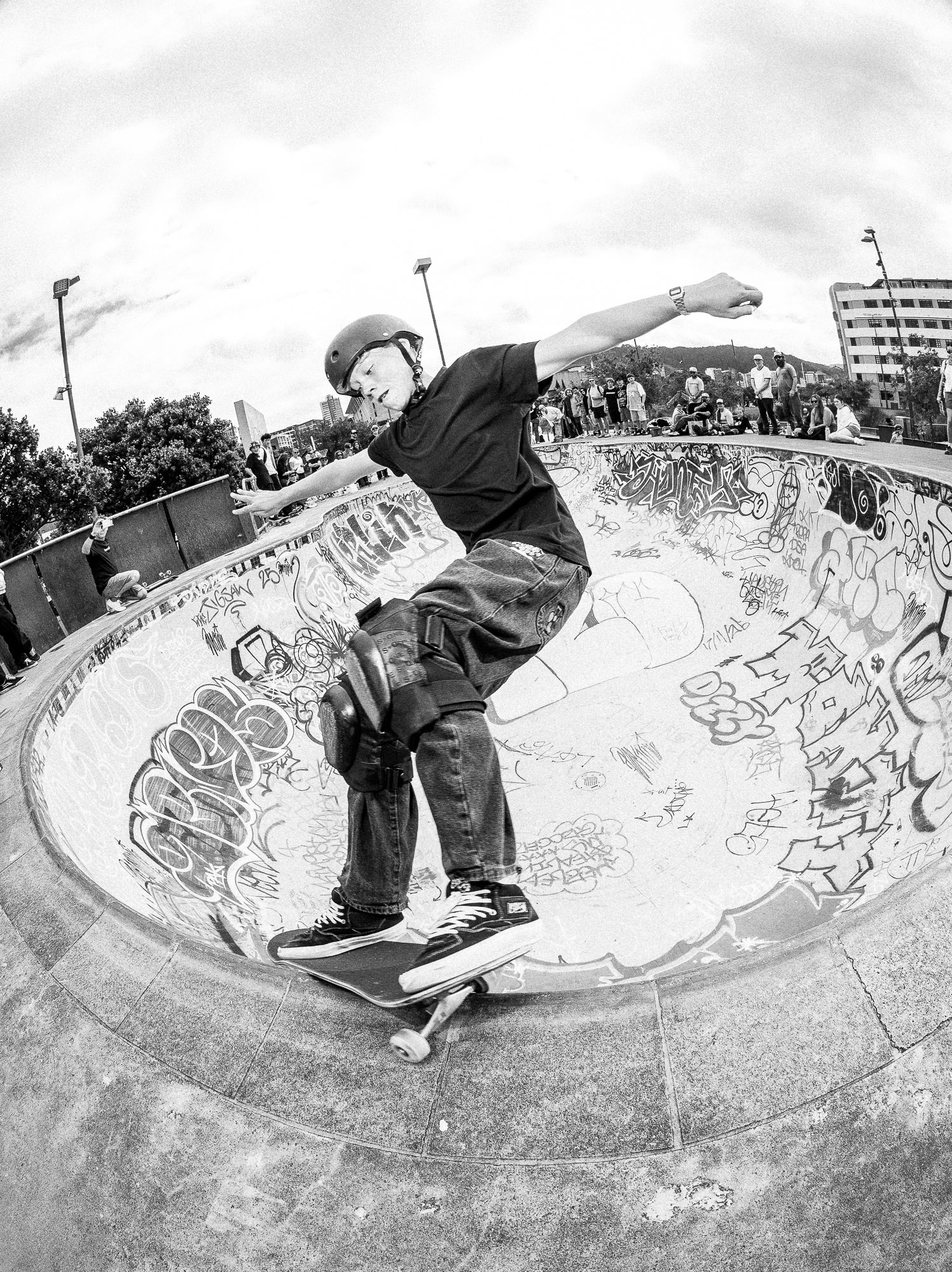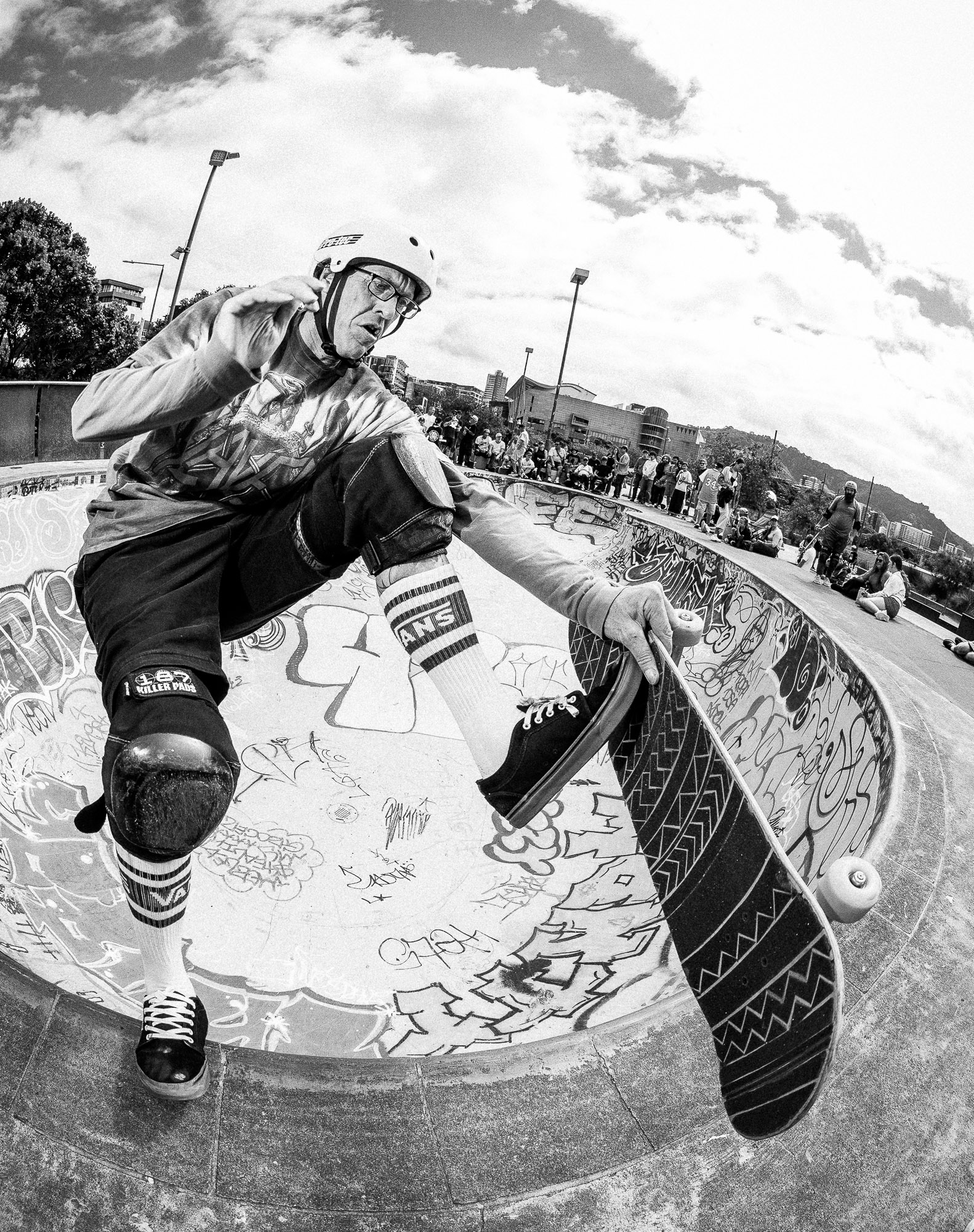 Thereʻs nothing geriatric about getting rad in a pool-style bowl. Unless you want to discuss pre- and post-skate pain relief? Cam from Kapiti.