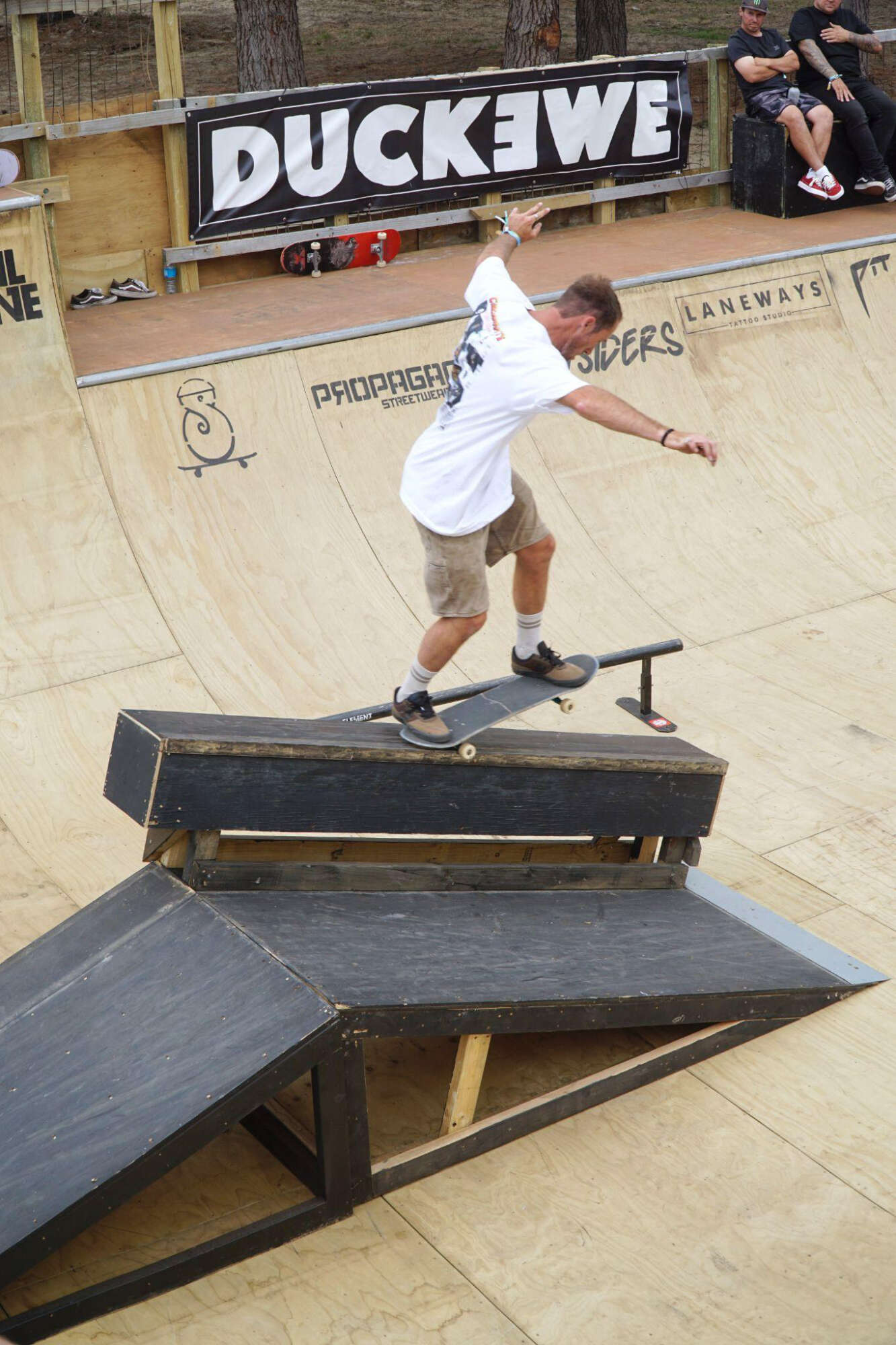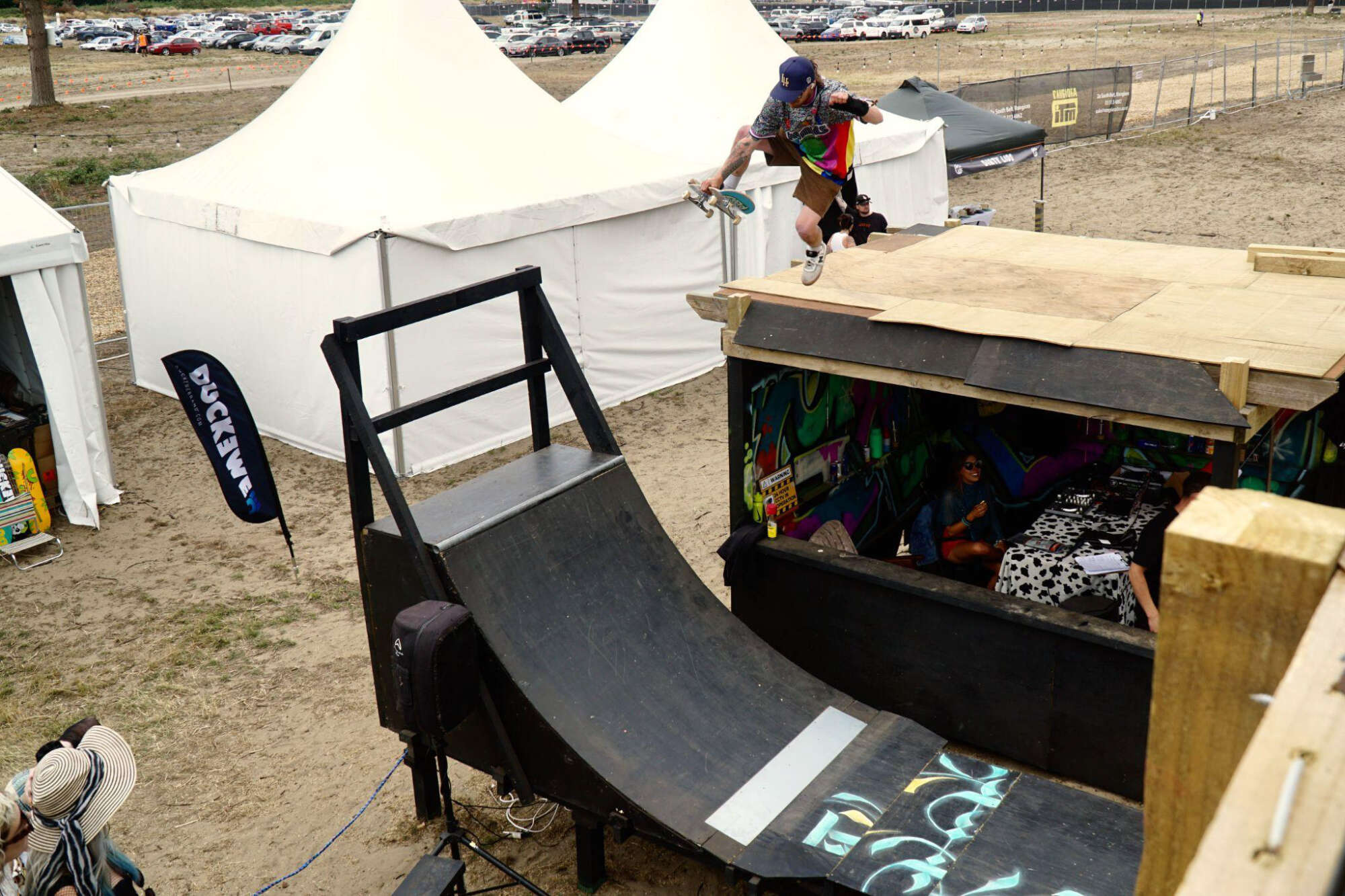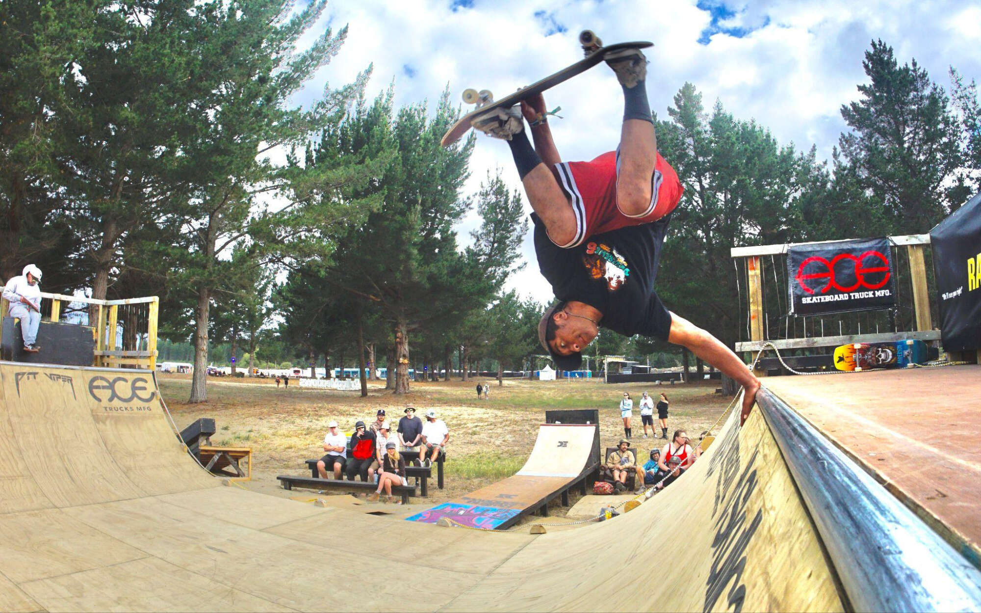 Duckbrewe 6 carried the energy of the rebuild straight into the festival. Skaters took over the ramp across the three-day festival, with competition heats, practice sessions, free skating, and side events like the basketball and limbo comp, creating moments that connected the skate whānau with the wider festival audience. The skate competition was even moved from day two to day one due to rain, and the skaters took it in their stride. On day two, the party didn’t stop; just a few more beer cans entered the chat, and the dancing shoes got muddy in the wet sand.