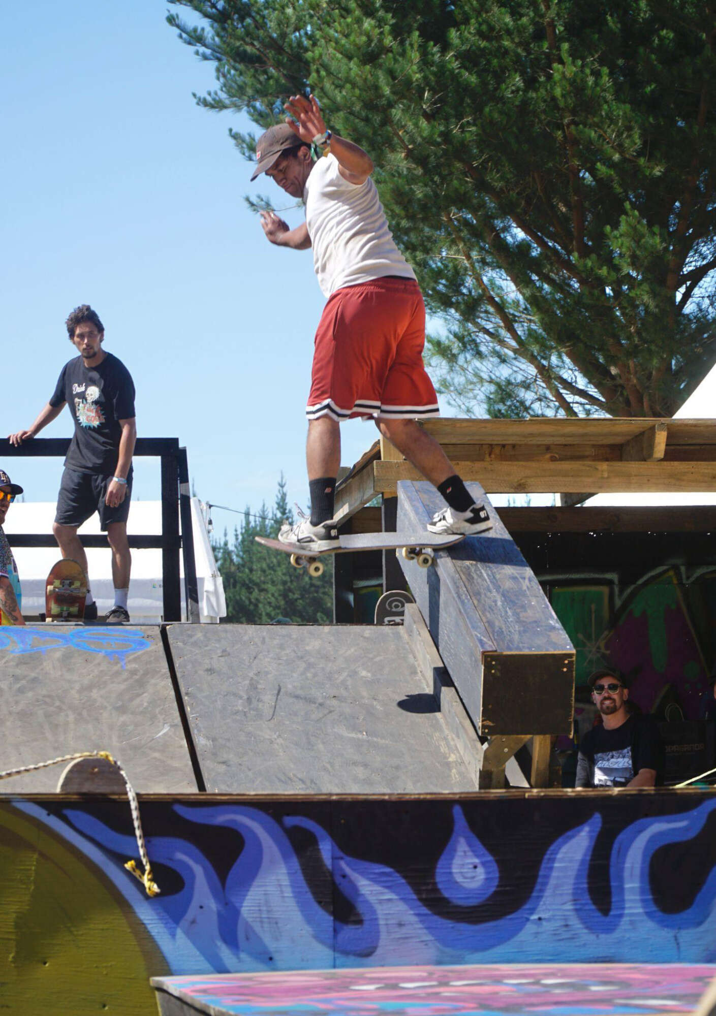 After the festival, we held a whānau day in January, opening the ramp to U18 skaters and giving younger riders the chance to experience the new setup before it returned to hibernation. The session was heavy, with James Mulder boneless-ing off the pergola roof while Jake Hunter Harris cleared it with an ollie and landed a kickflip rock to fakie. Skye put on a clinic with a frontside lipslide and a feeble to fakie, Cooper Mulder locked in a lien to tail, and Hazza Hayden Collins flew through a frontside air.